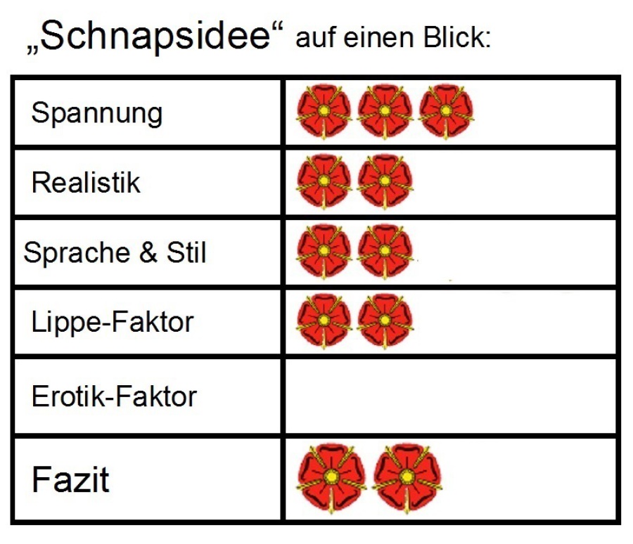 Davon abgesehen: „Schnapsidee“ ist einer der besseren unter den Jupp-Schulte-Krimis, die ich bisher gelesen habe, wenn er auch nicht ganz an den Vorgänger („Lippische Seilschaften“) heranreicht: aktuelle Themen aufgreifend, leidlich spannend, gut zu lesen. Was mich besonders gefreut hat: längst nicht so weitschweifig wie andere Bände aus der Reihe; und vor allem: die inhaltlichen Schlampereien, die mich (nicht nur) im „Varusfluch“ so geärgert haben, fehlen hier (da käme ich mir geradezu kleinlich vor, würde ich darauf herumreiten, dass mir auf den letzten beiden Seiten doch noch ein kleinerer Lapsus aufgefallen ist).